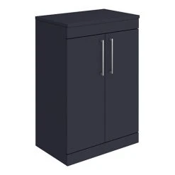 The contemporary matt blue Arezzo furniture range, with it’s clean lines this vanity unit is perfect for renewing the style in any bathroom. Designed for use with a counter top basin (not included), it’s stylish modern design hides all unsightly pipework creating a neat modern look. A internal shelf provides generous storage space for your toiletries, helping to keep your bathroom clutter free. Features a eye-catching and stylish matt blue finish with on-trend modern polished chrome square bar handles.