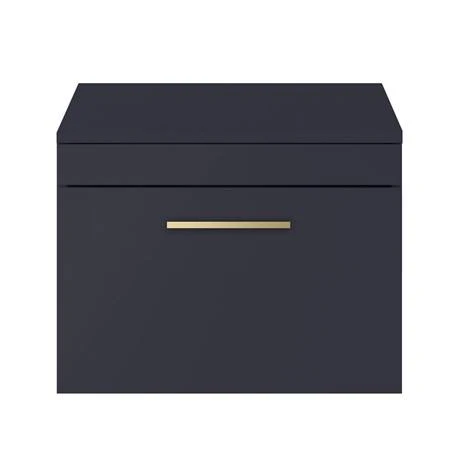 The contemporary matt blue Arezzo furniture range, with it’s clean lines this vanity unit is perfect for renewing the style in any bathroom. Designed for use with a counter top basin (not included), it’s stylish modern design hides all unsightly pipework creating a neat modern look. A soft closing drawer provides generous storage space for your toiletries, helping to keep your bathroom clutter free. Features a eye-catching stylish matt blue finish with a on-trend modern brushed brass square bar handle.
