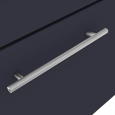 - Round knurled industrial style satin chrome bar handle