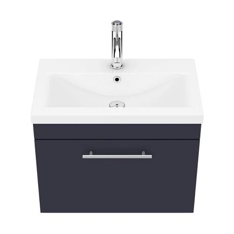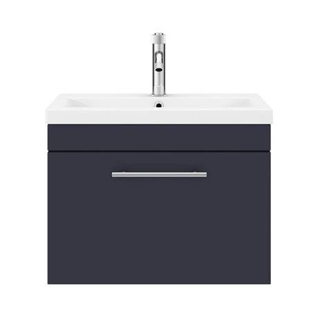 The contemporary matt blue Arezzo Industrial style furniture range, with it’s clean lines this vanity unit is perfect for renewing the style in any bathroom. It’s stylish modern design hides all unsightly pipework creating a neat modern look. The units soft-closing drawer provides plenty of storage space for toiletries. Features an eye-catching and stylish matt blue finish with a on-trend round satin chrome knurled detail handle, great for creating an eye catching industrial look in your bathroom.