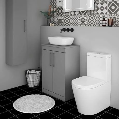 The contemporary matt grey Arezzo furniture range, with it’s clean lines this vanity unit is perfect for renewing the style in any bathroom. Designed for use with a counter top basin (not included), it’s stylish modern design hides all unsightly pipework creating a neat modern look. A internal shelf provides generous storage space for your toiletries, helping to keep your bathroom clutter free. Features a eye-catching and stylish matt grey finish with on-trend modern polished chrome square bar handles.
