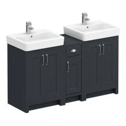 Chatsworth Traditional Grey Double Basin Vanity with Matt Black Handles | Bathroom Furniture Pack