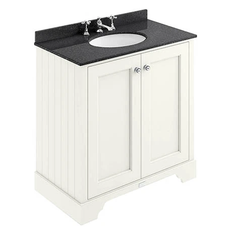 The Bayswater Pointing White 800mm 2 Door Vanity Unit and Black Marble Basin Top will create a unique centre piece to any classic themed bathroom. It’s ample storage space provides plenty of room for bathroom essentials while the soft close doors limits the daily wear and tear and provides a quieter closing action. Made from high quality materials, it features side panelling for a classic look, elegant chrome knobs and a Bayswater logo plate that beautifully finishes the unit. The stunning black marble top basin contrasts beautifully with the classic white china basin.
