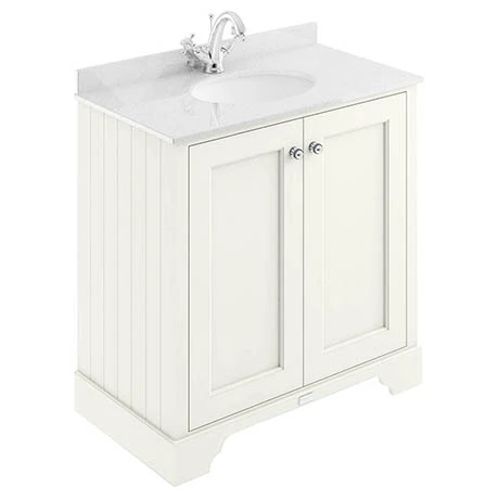 The Bayswater Pointing White 800mm 2 Door Vanity Unit and White Marble Basin Top will create a unique centre piece to any classic themed bathroom. It’s ample storage space provides plenty of room for bathroom essentials while the soft close doors limits the daily wear and tear and provides a quieter closing action. Made from high quality materials, it features side panelling for a classic look, elegant chrome knobs and a Bayswater logo plate that beautifully finishes the unit. The stunning white marble top basin co-ordinates beautifully with the classic white china basin.