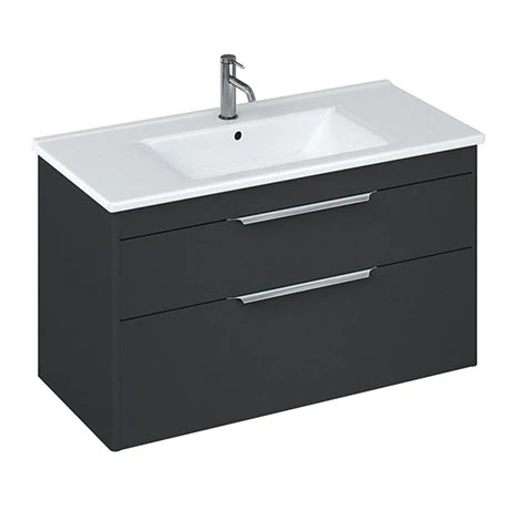 The Shoreditch furniture collection from Britton Bathrooms offer a range of storage solutions to suit every personal preference and bathroom size, especially designed for its environment. This 1000mm Wall-Hung Double Drawer Vanity Unit in Matt Grey comes with soft closing drawers preventing slamming and therefore offering protection to your bathroom furniture. The unit is manufactured in high quality 16mm medium density fibre board and comes supplied with chrome handles as standard. Brushed Brass or Matt Black handles are available as an optional upgrade.