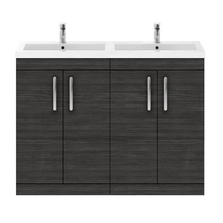 • Elevate your bathroom space with the Brooklyn 1205mm Black Double Basin Vanity Unit, featuring a contemporary design and high-quality materials.
