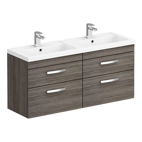 The 1205mm wide Brooklyn double basin wall hung vanity unit, bring a clean modern look to your bathroom. Combines up to date looks with practical storage, perfect for couples or families.