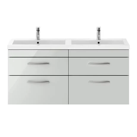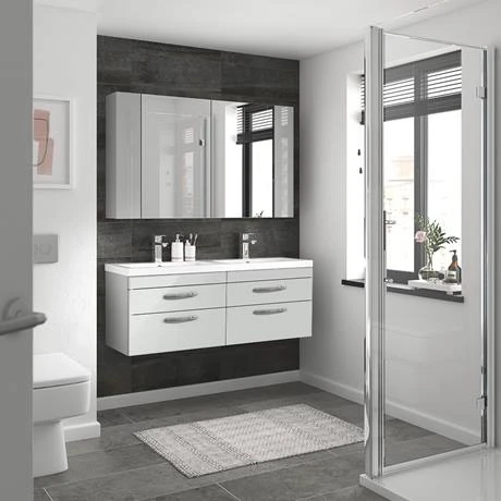 The 1205mm wide Brooklyn double basin wall hung vanity unit, bring a clean modern look to your bathroom. Combines up to date looks with practical storage, perfect for couples or families.