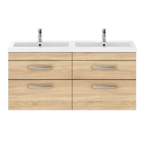 The 1205mm wide Brooklyn double basin wall hung vanity unit, bring a clean modern look to your bathroom. Combines up to date looks with practical storage, perfect for couples or families.