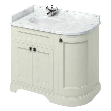 Burlington’s innovative furniture ranges are sure to add style and sophistication to any traditional setting with its elegant designs. This practical freestanding curved corner vanity unit with its open wide doors offers plenty of storage capacity and features soft closing hinges and stylish chrome plated metal handles. Each unit is coated with 5 layers of ultra-violet stabilised primer to prevent colour fading, it is then painted with a top coat from a range of classic finishes.