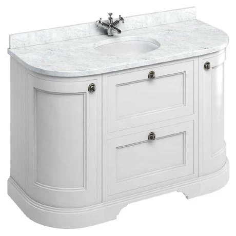 Burlington’s innovative furniture ranges are sure to add style and sophistication to any traditional setting with its elegant designs. This practical freestanding curved vanity unit offers plenty of storage capacity and features soft closing doors and drawers each with its own stylish chrome plated metal handle. Each unit is coated with 5 layers of ultra-violet stabilised primer to prevent colour fading, it is then painted with a top coat from a range of classic finishes.
