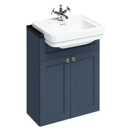 This beautifully designed 2-door vanity unit and semi-recessed basin is from Burlington’s fitted furniture range. Create a seamless look by combining base and wall units and stunning Minerva worktops to any configuration to give the illusion of space and maximise functionality in your bathroom.