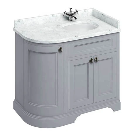 Burlington’s innovative furniture ranges are sure to add style and sophistication to any traditional setting with its elegant designs. This practical freestanding curved corner vanity unit with its open wide doors offers plenty of storage capacity and features soft closing hinges and stylish chrome plated metal handles. Each unit is coated with 5 layers of ultra-violet stabilised primer to prevent colour fading, it is then painted with a top coat from a range of classic finishes.