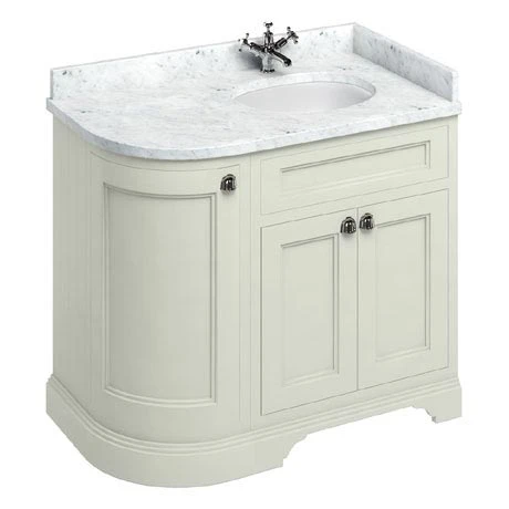 Burlington’s innovative furniture ranges are sure to add style and sophistication to any traditional setting with its elegant designs. This practical freestanding curved corner vanity unit with its open wide doors offers plenty of storage capacity and features soft closing hinges and stylish chrome plated metal handles. Each unit is coated with 5 layers of ultra-violet stabilised primer to prevent colour fading, it is then painted with a top coat from a range of classic finishes.