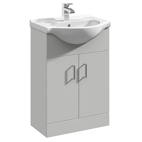 With its light grey gloss finish, the Cove Vanity Unit is an elegant addition to a contemporary bathroom. It’s just 514mm wide, so fits well into compact spaces while offering a generous amount of storage space for your toiletries. Its two doors are fitted with soft close mechanisms to prevent slamming. This freestanding vanity unit is topped with a ceramic basin thatโs both durable and easy to clean. Need a tap, too? The Milan Modern Mono Basin Mixer matches the chrome slimline handles on this basin vanity unit.