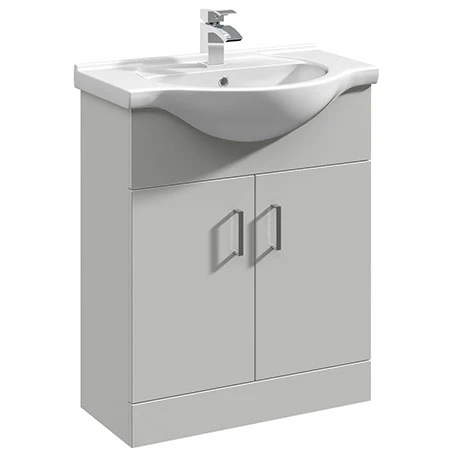 • Enhance your bathroom with the sleek and contemporary Cove Light Grey 650mm Freestanding Vanity Unit, designed to combine style and functionality.