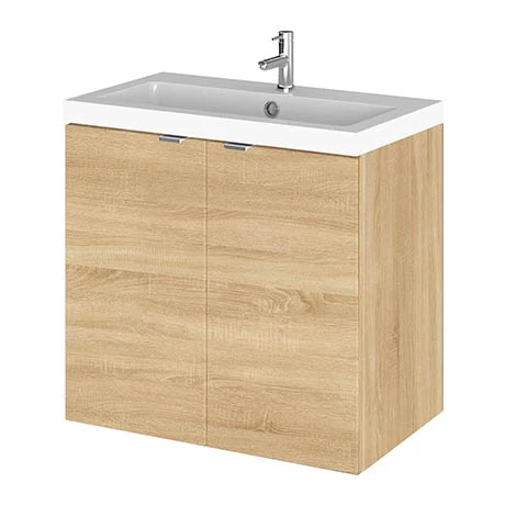 Hudson Reed 600mm Natural Oak Full Depth Wall Hung 2-Door Unit & Basin – Modern Bathroom Storage Solution