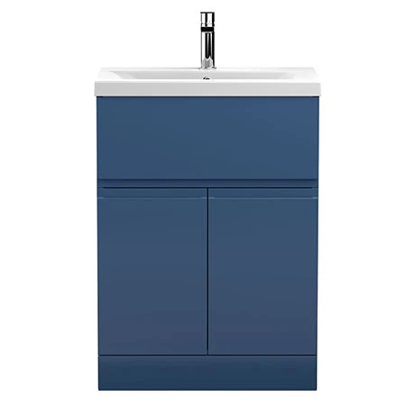 Hudson Reed Urban Satin Blue 600mm Floor Standing 2-Door/Drawer Vanity Unit – URB303A | Modern Freestanding Bathroom Storage
