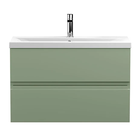 Hudson Reed Urban Satin Green 800mm Wall Hung 2-Drawer Vanity Unit – URB806A | Modern Bathroom Storage Solution
