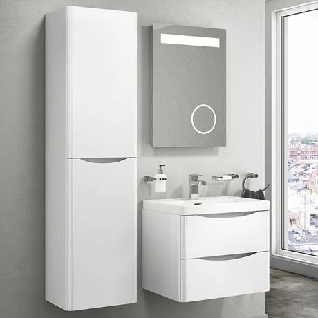 A minimalist design combines with maximum storage in the Monza Gloss White Vanity Unit. This compact 500mm wide, wall hung vanity unit has two generously proportioned soft closing drawers for storing your bathroom essentials. It’s wall hung design will free up floor space giving the illusion of a bigger bathroom and the rounded corners on the drawers and the basin, help to create a stunning focal point and work to elevate the style of your space. If you love this gloss white vanity unit, you might appreciate the matching Gloss White Monza Tall Storage Unit for even more cupboard space.