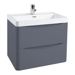 A minimalist design combines with maximum storage in the Monza Matt Grey Vanity Unit. This 600mm wide, wall hung vanity unit has two generously proportioned soft closing drawers for storing your bathroom essentials. It’s wall hung design will free up floor space giving the illusion of a bigger bathroom and the rounded corners on the drawers and the basin, help to create a stunning focal point and work to elevate the style of your space. If you love this matt grey vanity unit, you might appreciate the matching Matt Grey Monza Tall Storage Unit for even more cupboard space.