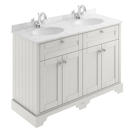 This unique Timeless Sand 1200mm unit will create the perfect calming effect within your bathroom. It features soft close doors which limits the daily wear and tear and provides a quieter closing action. The luxury Grey polished double marble top basin achieves a timeless, classic look. Ideal for creating a period look in your bathroom this furniture range with it’s clean classical design blends beautifully with Old London’s range of traditional bathroom furniture.