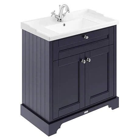 The striking finish of this Twilight Blue 800mm 2-door cabinet and basin will add contrast and impact to your traditional bathroom. It features soft close doors which limits the daily wear and tear and provides a quieter closing action. Ideal for creating a period look in your bathroom this furniture range with it’s clean classical design blends beautifully with Old London’s range of traditional bathroom furniture.