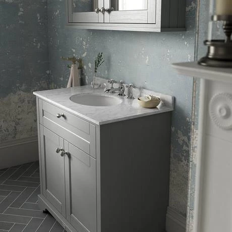 Old London 800mm Cabinet & Single Bowl Grey Marble Top – Storm Grey | Freestanding Vanity Unit | Modern Bathroom Design