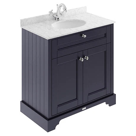 The striking finish of this Twilight blue unit will add contrast and impact to your traditional bathroom. It features soft close doors which limits the daily wear and tear and provides a quieter closing action. The luxury Grey polished marble top achieves a timeless, classic look. Ideal for creating a period look in your bathroom this furniture range with it’s clean classical design blends beautifully with Old London’s range of traditional bathroom furniture.