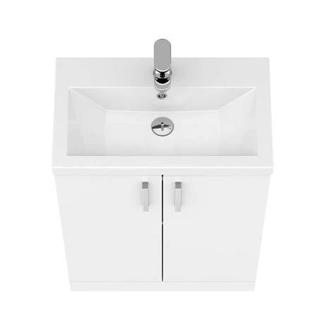 Elevate your bathroom with the sleek, square lines of this Pallas 600 White Vanity Unit. This freestanding vanity unit is 605mm wide and offers a practical storage solution with ample room for your toiletries. Say goodbye to accidental slamming with the soft close doors on this basin vanity unit – they also have slim chrome handles for added sheen. The ceramic basin is durable and easy to clean with its smooth surface and white gloss finish that will accentuate a modern style.