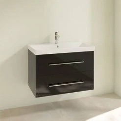 Villeroy & Boch Avento Crystal Black 800mm Wall Hung 2-Drawer Vanity Unit