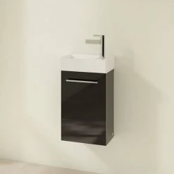 Villeroy & Boch Avento Crystal Black 550mm Wall Hung 1-Door Vanity Unit | Modern Bathroom Storage
