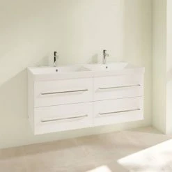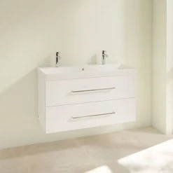 Villeroy & Boch Avento Double Vanity Unit 1180mm in Crystal White | Wall Hung Design – SAVE29B401