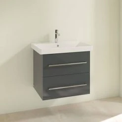 Villeroy & Boch Avento Crystal Grey 600mm Wall Hung 2-Drawer Vanity Unit – Modern Bathroom Storage
