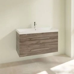 Villeroy & Boch Avento Stone Oak 360mm Wall Hung Vanity Unit with Right Bowl Basin