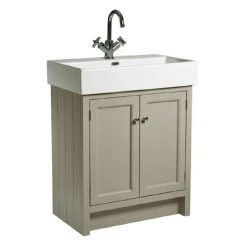 The Hampton 700mm countertop unit adds a classic look and feel to any bathroom with its shaker style doors and side panelling. Built and painted by hand, the units feature magnetic catches for smooth door opening, internal shelf for practical storage and round chrome finished door knobs. The countertop ceramic basin offers a large washing area and complements Roper Rhodes range of traditional basin mixers.