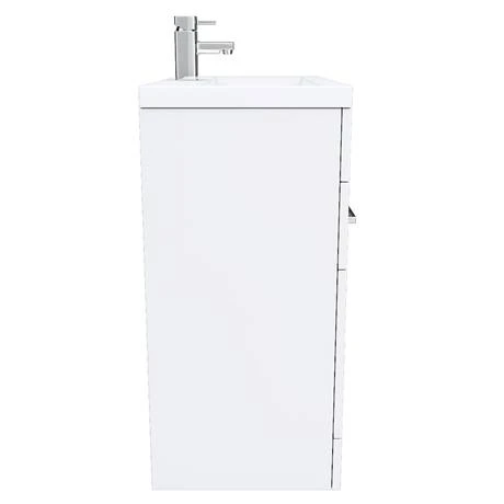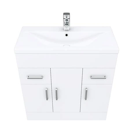 Turn your bathroom storage into an elegant feature with the Toreno Basin Unit. This 810mm wide freestanding vanity unit features two drawers and three cupboards with internal shelving to keep bathroom essentials neatly organised. Its simple shape and high gloss white finish create a modern feel, complemented by the low profile mid edged ceramic basin that slots in on top. Want to avoid excess noise? The soft close mechanisms on the drawers and doors help eliminate those sudden bangs. Add a Toreno Modern Basin Mixer Tap to enhance the minimalist look of this basin vanity unit.