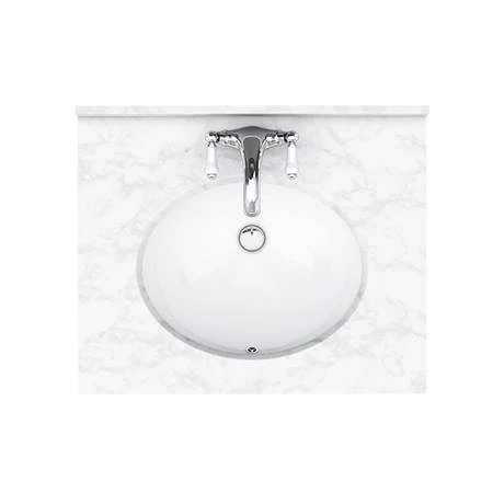 - Inset ceramic basin with overflow