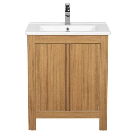 Add a modern touch to your bathroom with the elegant Valencia Naturale Oak range. With a high-quality finish, its handle-less design makes the vanity unit sleek and seamless, great for creating a clean, uncluttered look.