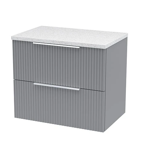 The Venice Fluted 600mm Satin Grey 2-Drawer Wall Hung Vanity Unit with Sparkling White Worktop features an eye-catching design that will create a stylish statement in your bathroom. It has ample storage with two large soft-closing drawers to keep your toiletries organised. The White worktop sits perfectly on top and all pipework is neatly concealed within the unit. Manufactured from quality materials, this vanity unit comes fully assembled and is finished in a Satin Grey.