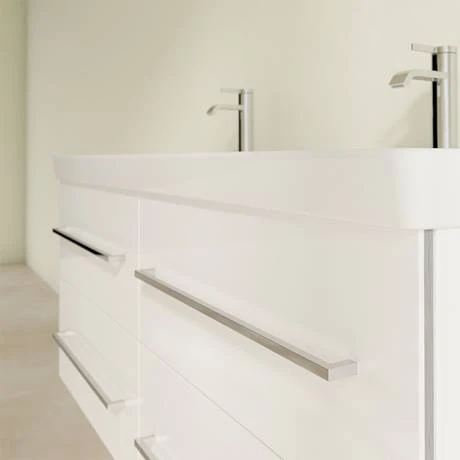Make a statement in your bathroom with the Villeroy and Boch Avento Double Vanity Unit. At a generous 1180mm wide and with two roomy ceramic basins, this high-quality double vanity will give couples their own space for daily care routines.