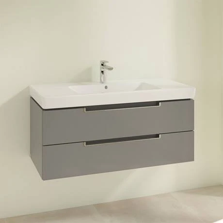 Subway 2.0 bathroom furniture by Villeroy & Boch brings diversity to the cosy bathroom. This Glossy Grey Wall Hung 2-Drawer Vanity Unit has generous storage space thanks to clever interior arrangement and its shock-absorbing, soft-closing drawers that slows down the drawer and automatically closes it, slowly and silently. With a range of colours, the modern design of the bathroom furniture by Subway 2.0 gives every bathroom a fresh and natural look.