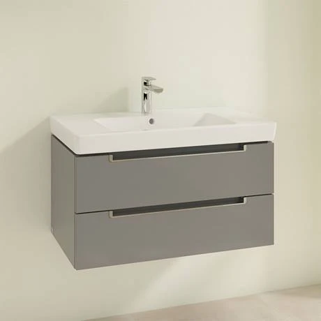 Subway 2.0 bathroom furniture by Villeroy & Boch brings diversity to the cosy bathroom. This Glossy Grey Wall Hung 2-Drawer Vanity Unit has generous storage space thanks to clever interior arrangement and its shock-absorbing, soft-closing drawers that slows down the drawer and automatically closes it, slowly and silently. With a range of colours, the modern design of the bathroom furniture by Subway 2.0 gives every bathroom a fresh and natural look.