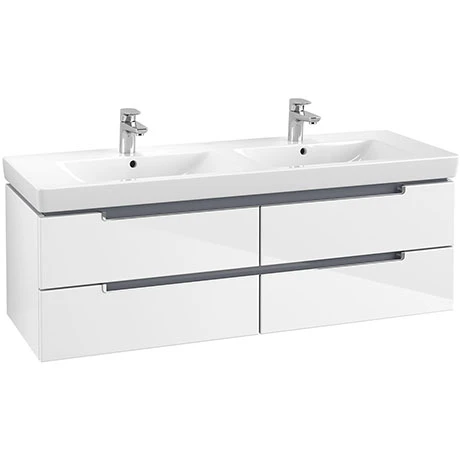 Subway 2.0 bathroom furniture by Villeroy & Boch brings diversity to the cosy bathroom. This Glossy White Wall Hung Double Basin Vanity Unit has generous storage space thanks to clever interior arrangement and its shock-absorbing, soft-closing drawers that slows down the drawer and automatically closes it, slowly and silently. With a range of colours, the modern design of the bathroom furniture by Subway 2.0 gives every bathroom a fresh and natural look.